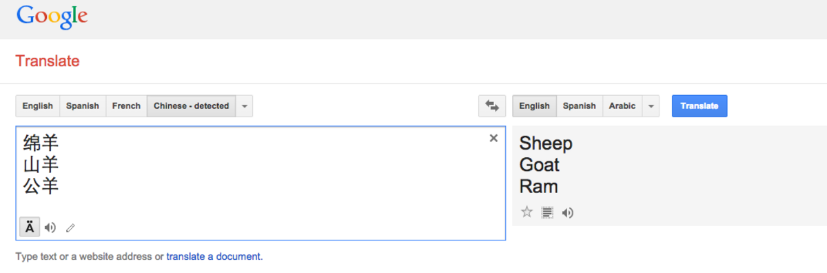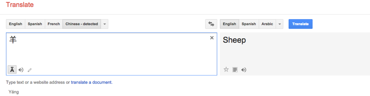 Mandarin, unlike English, is a language driven by symbols, not letters. The Mandarin word for the eighth animal in the 12-creature Chinese zodiac cycle is “yáng” (羊), defined in major Chinese-English dictionaries as “sheep.”?