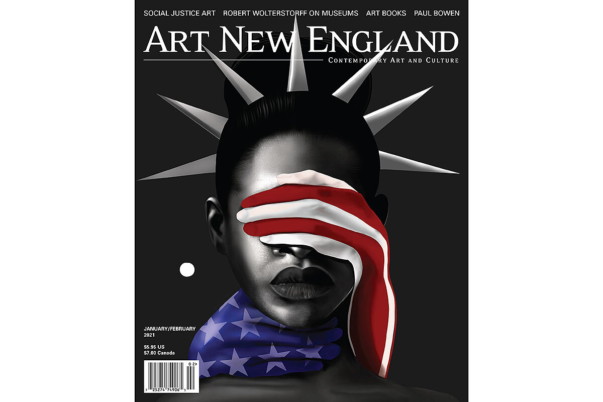 鈥淏lack Liberty鈥 depicts an American flag furling around the eyes and neck of a Black woman. It was featured on the cover of Art New England magazine.