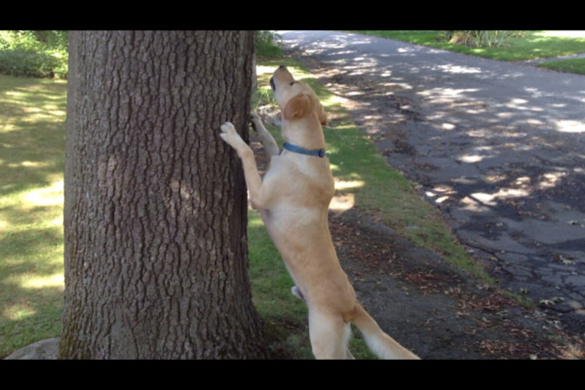 The other day,听础濒产颈别, our half yellow Lab, half Golden Retriever rescue dog, spotted a baby squirrel trying to make its way up a tree in our front yard. Albie circled the tree frantically, occasionally putting his paws on the trunk and stretching as far as he possibly could to try to get at the little creature who remained just beyond his reach. Eventually, the squirrel managed to get to a branch well out of range and remained there for a long while, still as a photograph, while Albie continued his exercise in futility. Nothing, not even a steak, could have distracted Albie from his mission.