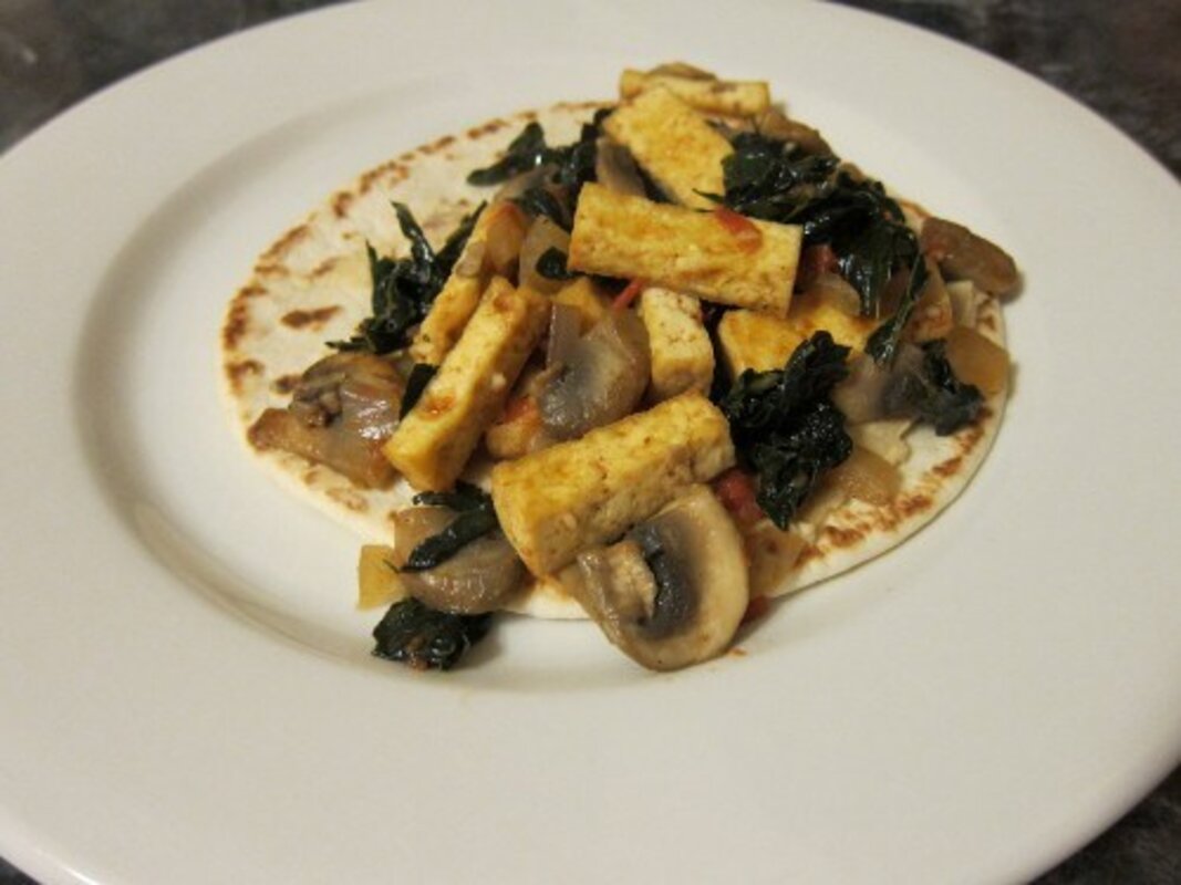 Wash kale, remove rigid spines, and tear into pieces. In a large saut茅 pan or wok, place kale and about 1/2 cup water over medium-high heat and cover.听 Steam for about 5 minutes, or until limp. Take off lid and let any remaining water evaporate. Remove kale and heat 1 teaspoon olive oil in wok. Saut茅 several (8 or 9, or whatever you鈥檝e got) sliced mushrooms along with about 1/4 cup diced onion. Return kale to wok. Add 1 clove of crushed garlic. Add tofu sticks.听 Stir gently until combined. Salt to taste.