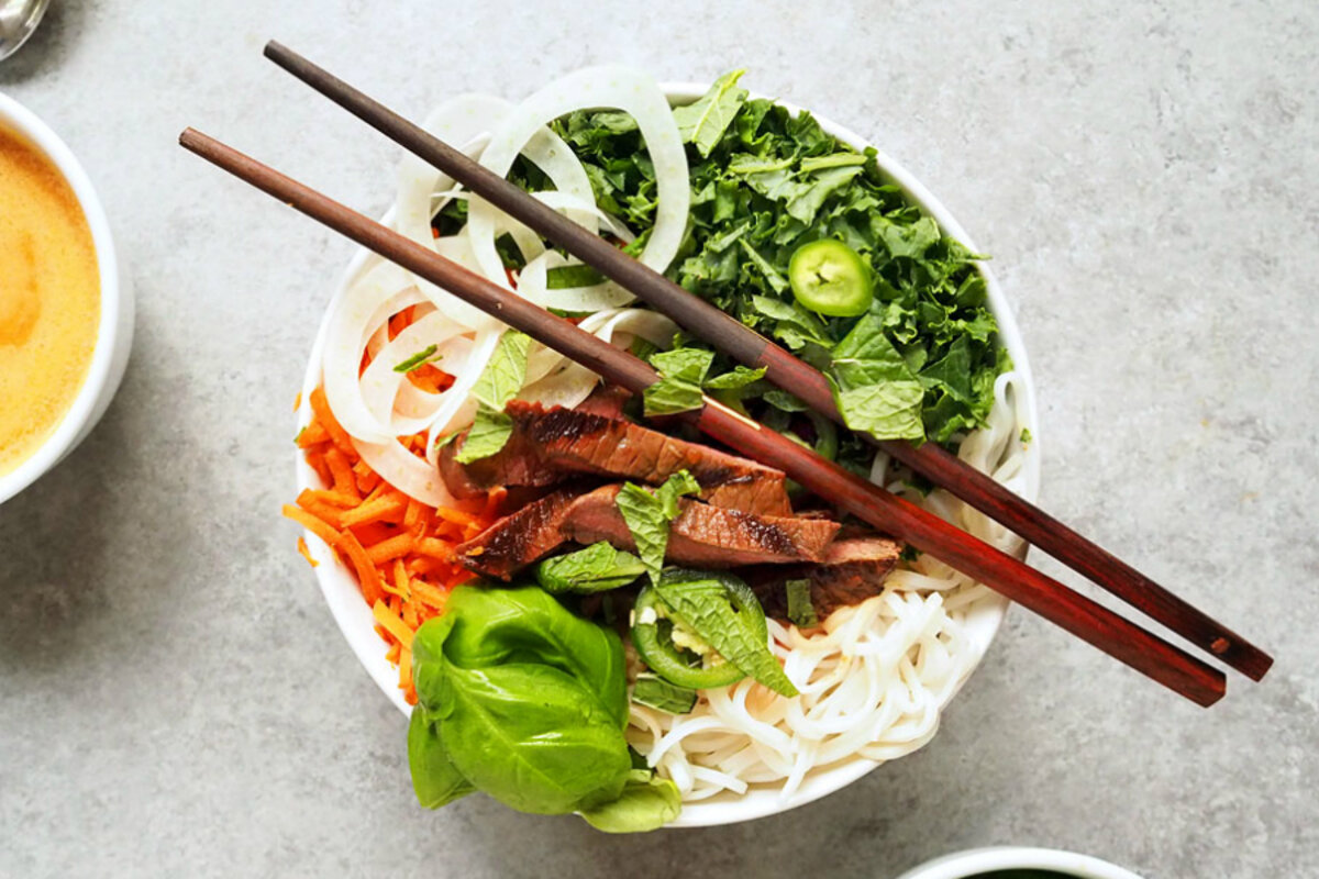 Easy Asian fennel beef rice noodle bowls