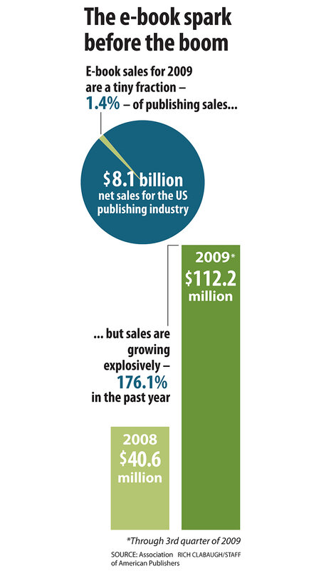 E-book sales remain a minuscule part of the publishing industry 鈥 just 1.4 percent of the total $10.9 billion sales in the first nine months of this year, according to the Association of American Publishers. But, not unlike the way digital music overtook traditional CDs overnight, e-books will probably dominate publishing industry sales within 10 years, estimates Mr. Haber, who helped develop the Sony Reader. 鈥淚t鈥檚 been building up for a year or so, but going into the [2009] holiday season, it鈥檚 suddenly mass exposure, multiple players in the market, multiple players rumored to be coming into the market. And that鈥檚 what drives innovation. Every year from now on is going to be a leap ahead.鈥