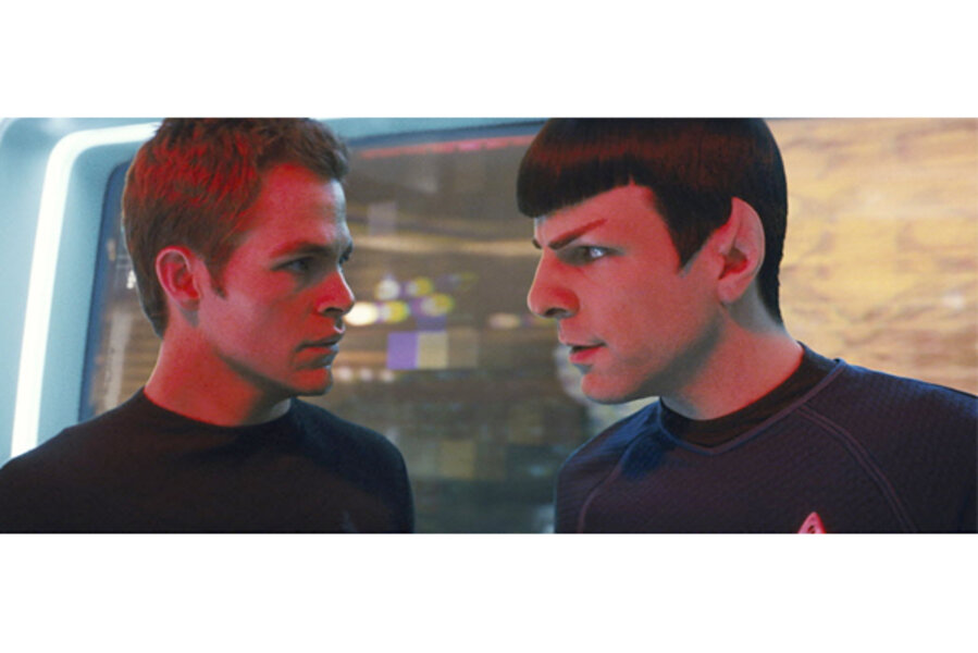 Chris Pine (l.) stars as a young Captain Kirk and Zachary Quinto (r.) plays a young Spock in the 2009 film 'Star Trek.'