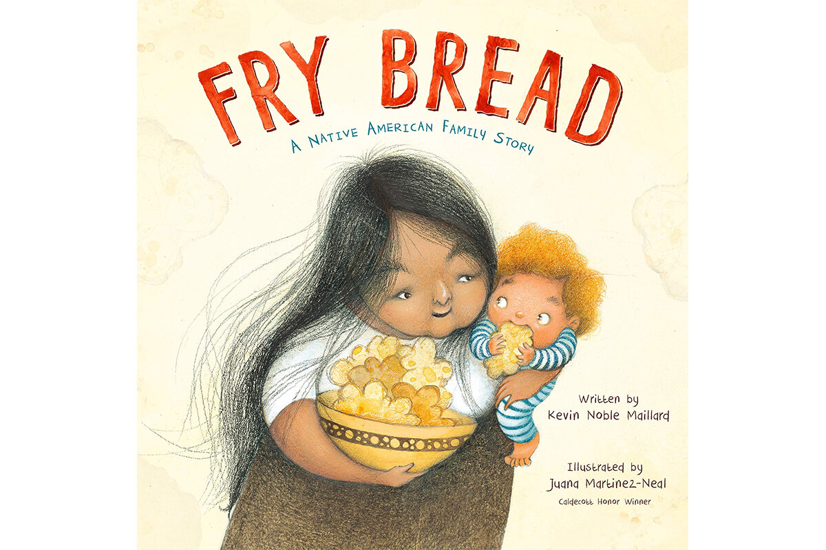 In Fry Bread: A Native American Family Story (ages 3-6), written by Kevin Noble Maillard and exuberantly illustrated by Juana Martinez-Neal in acrylic, pencil, and graphite, even the endpapers tell a story. Children of all sizes and descriptions assemble fry bread ingredients, shape the dough, drop it in the sizzling skillet, and delight in the taste. The author’s note reminds us “They are communions ... because bread is not meant to be cooked for one.” Like so many dishes and their tales handed down through generations in many cultures, this simple yet powerful story reminds us of the importance of shared traditions.