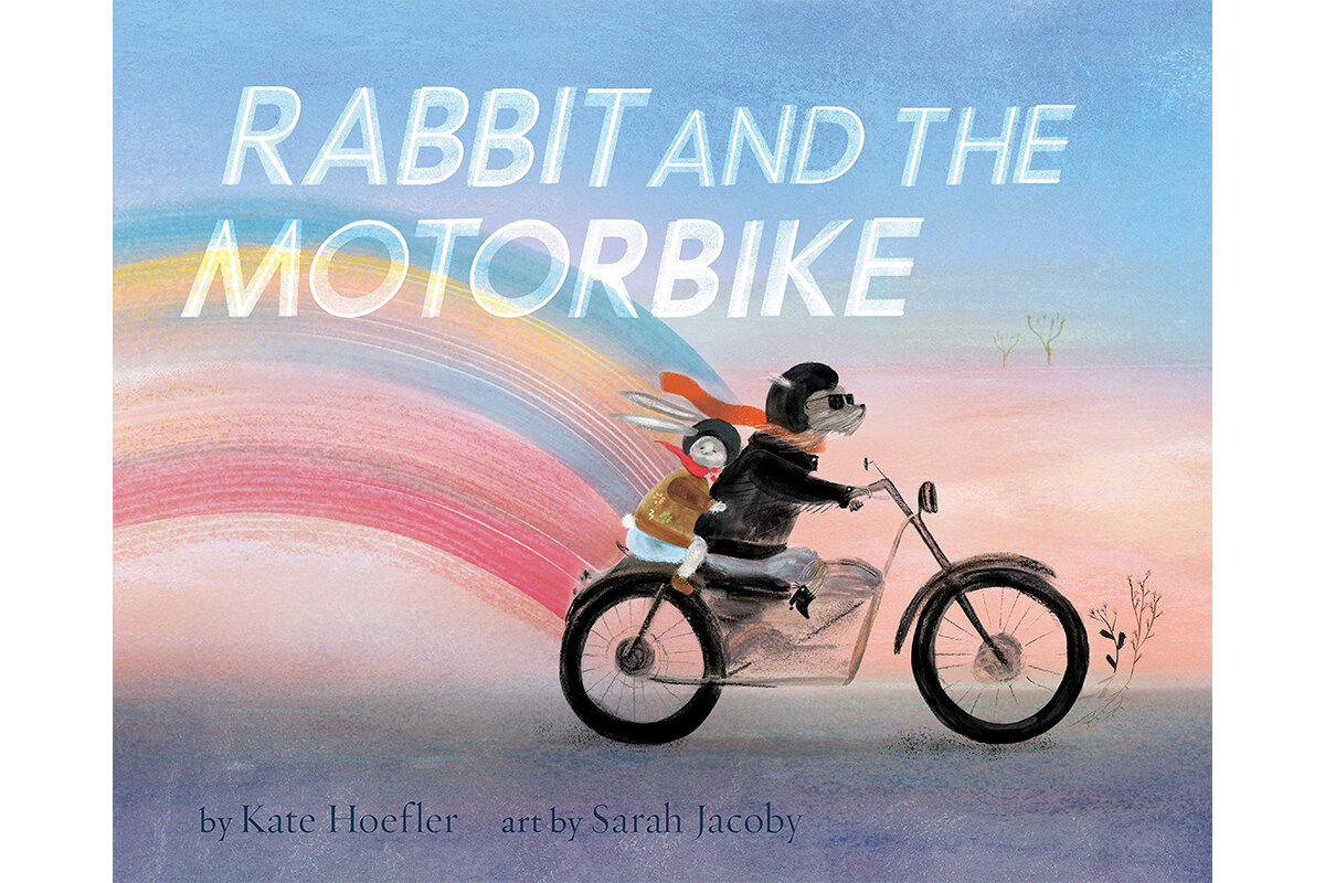 In Kate Hoefler’s new picture book, Rabbit and the Motorbike (ages 4-7), Rabbit and Dog have such a sweet, lovely friendship. Rabbit is not brave but his friend is an adventurer who regales Rabbit with stories. But when Dog dies, his motorcycle sits as a sad reminder until Rabbit slowly conquers his fears. Illustrated by Sarah Jacoby with gorgeous watercolor and mixed-media spreads, this touching story beautifully handles grief and sadness. A tender, breathtaking picture book that you’ll read again and again.