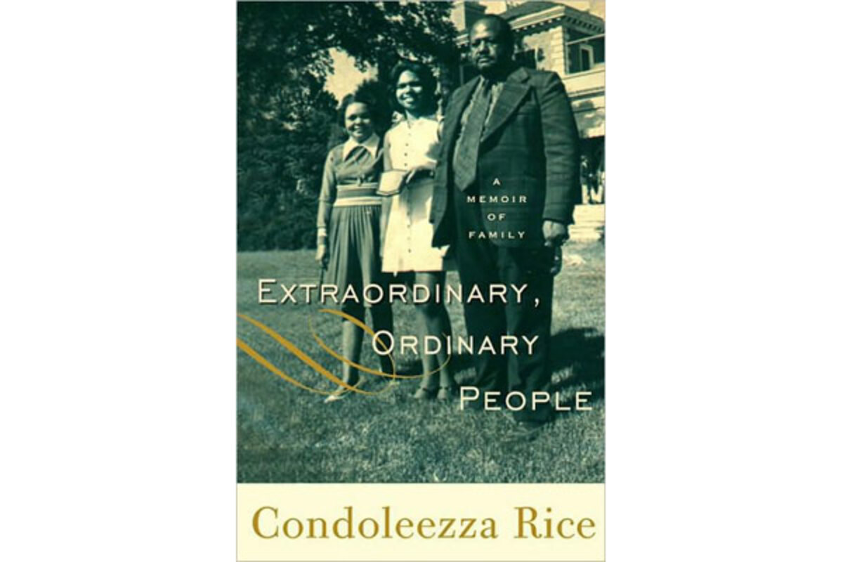 The lovely but atypical name 鈥淐ondoleezza鈥 is a phonetic spelling of an Italian musical term. The Rices fiddled with the idea of naming a first child 鈥 who would, as it happened, be their only child 鈥 鈥淎ndantino鈥 or 鈥 Allegro鈥 but her mother settled upon con dolcezza when she learned it translated 鈥渨ith sweetness.鈥 In keeping with Condoleezza Rice鈥檚 birth name, her memoir focuses on the sugary side of her life and work. Though politically, Rice may be a moderate to conservative hawk, Extraordinary, Ordinary People is the work of a dove 鈥 an ode to her parents, with sweetness and love.