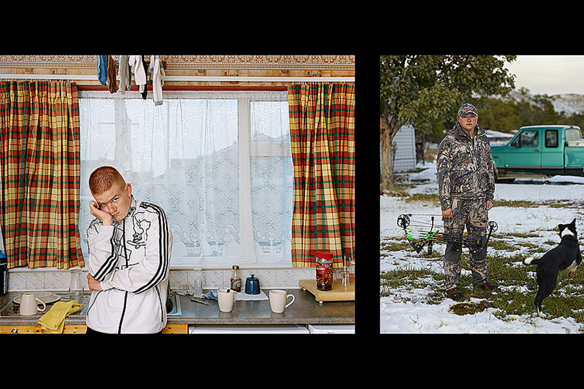 The photography in "Dirt Meridian" also resides in that space between beauty and harshness. The aerial images are done when the sun is very low and from a low altitude, almost like a bird鈥檚 eye view. 聽This technique brings up the texture on the surface. Trains, brush, pipelines, animals all seem to pop up from the land. 聽The images done at ground level afford us a closer look at the people who live along the meridian. 聽These photographs show decay but also 聽convey a sense of resilience. 聽These are not people who dwell in comfort. They bear the scars of living in a landscape that is always reclaiming what belongs to it.