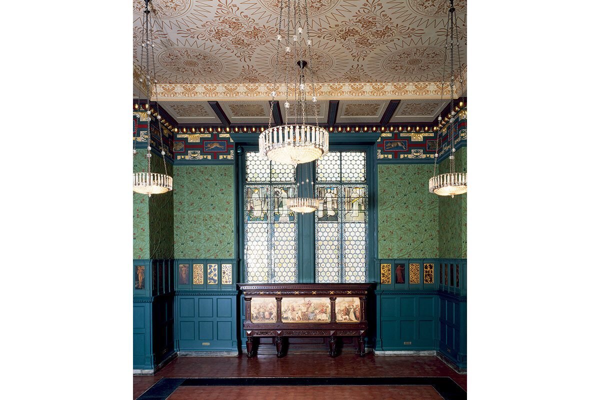 The company鈥檚 painted cabinetry, stained glass, and wall hangings portrayed stories from Chaucer and King Arthur, along with characters from Greek mythology and the Bible. Morris and his cohorts chose strong, saturated colors, especially blues and reds, for their designs. The colors were inspired by those Morris had seen in the stained-glass windows of the cathedrals he visited. Before long, wealthy clients 鈥 from British nobles to American industrialists 鈥 began commissioning goods from the company.聽