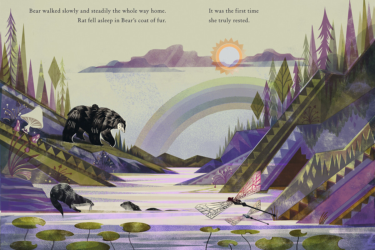 When Rat stumbles upon a big and perhaps intimidating stranger, readers might be worried (especially after her near-devastating encounter with a snake). But rather than threatening the vulnerable Rat, Bear offers understanding and support.