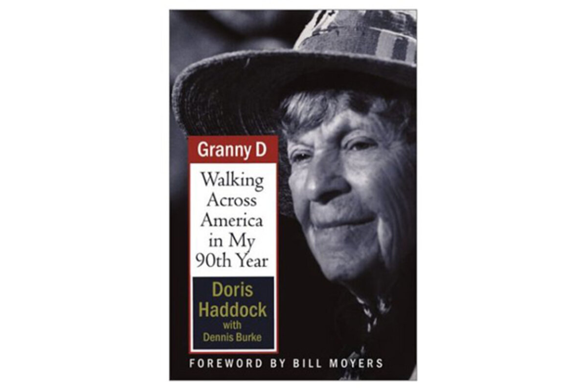 I'm re-reading Doris Haddock's Granny D: Walking Across America in My 90th Year. Although published nine years ago, "Granny D" is so timely, considering the U.S. Supreme Court's decision overturning campaign finances laws. Her walk was made to publicize the need for those laws and inspired the McCain-Feingold Act, which was overturned.