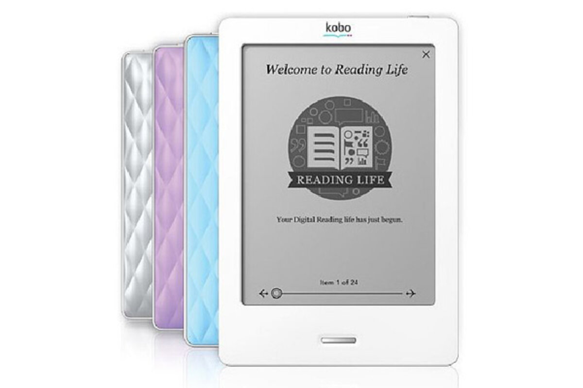 The paperback-sized eReader Touch (Kobo says it鈥檚 designed to fit in a jeans pocket) has a clean, simple design 鈥 mostly screen with only one physical button. It uses e-ink, like a Kindle; can be read in bright light; and best of all, works like a touchscreen so readers can turn a page with the swipe of a finger.