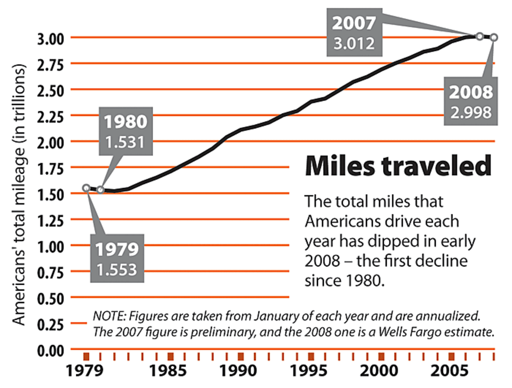 The slight decline in total miles driven 鈥 apparent first in December 鈥 may indicate that the twin forces of high gasoline prices and a struggling economy are starting to affect the US lifestyle. Surveys find that Americans now consider gasoline prices a "financial hardship."