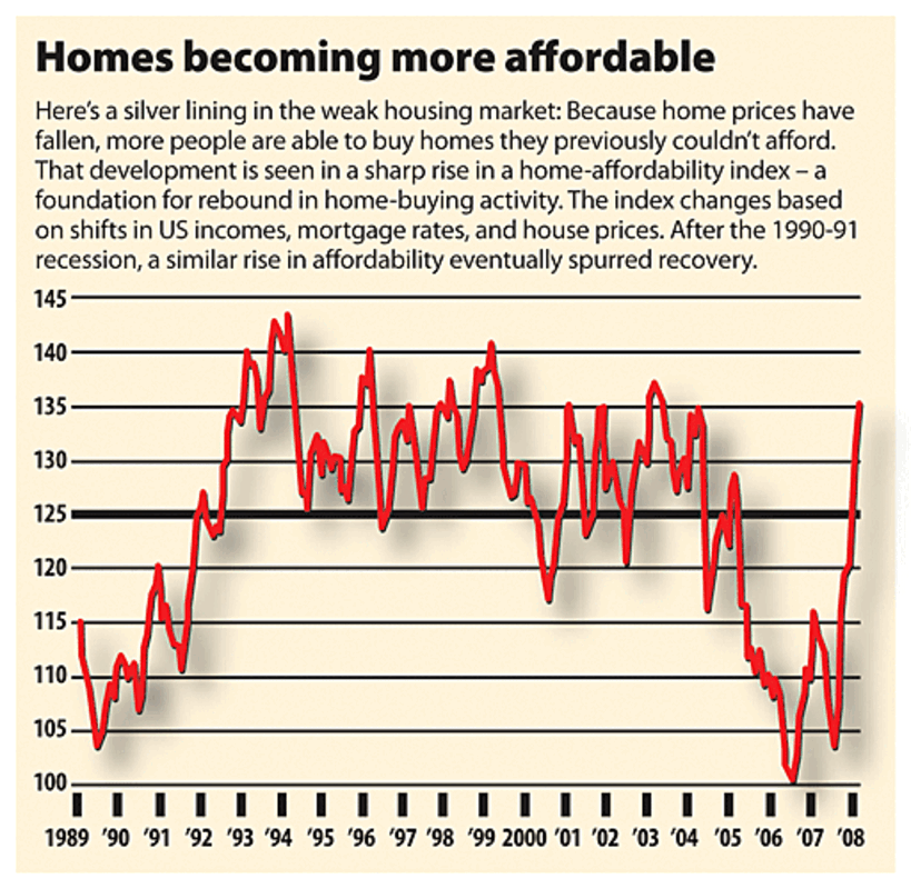 鈥n recent weeks, an index of home affordability has moved convincingly above average, a step that could lay the groundwork for buyers to begin to return to the housing market.