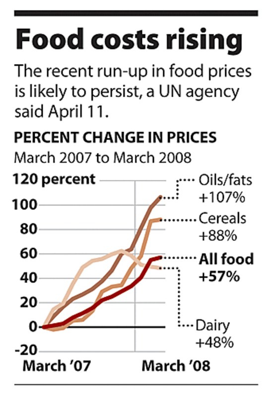 The current problem is not a shortage of food but rather prices that are soaring too fast, especially for the 2 billion people with incomes of about $2 per day or less.