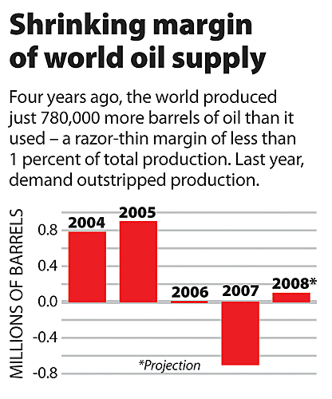 According to Cambridge Energy Research Associates, world oil demand will increase a further 1.3 million barrels per day in 2008, with Asia and the Middle East accounting for 800,000 barrels per day of that growth.