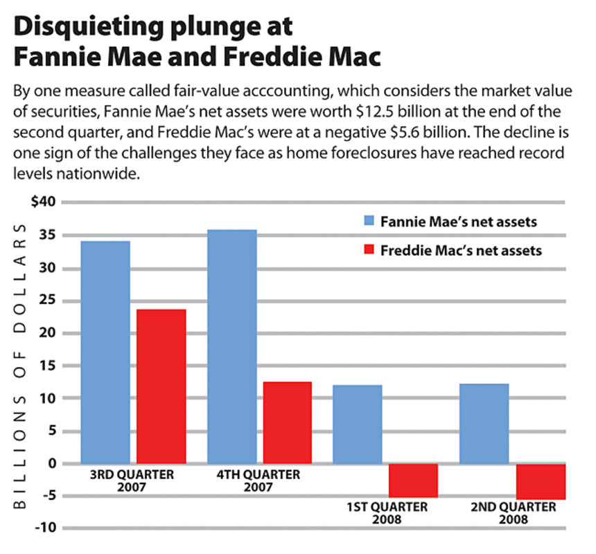 Their role in the housing market has long been controversial, but in the current weak economy their outright failure is unthinkable for most policymakers.