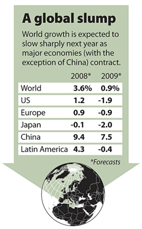 Now, the global weakness stems from many factors, not just the slowdown in US consumer spending. America's housing slump has parallels in other nations, from China to Spain. Financial turmoil in the US has rippled through the global banking system. Falling prices for oil and other commodities, while helping consumers in many nations, have hurt resource-dependent economies such as Russia.