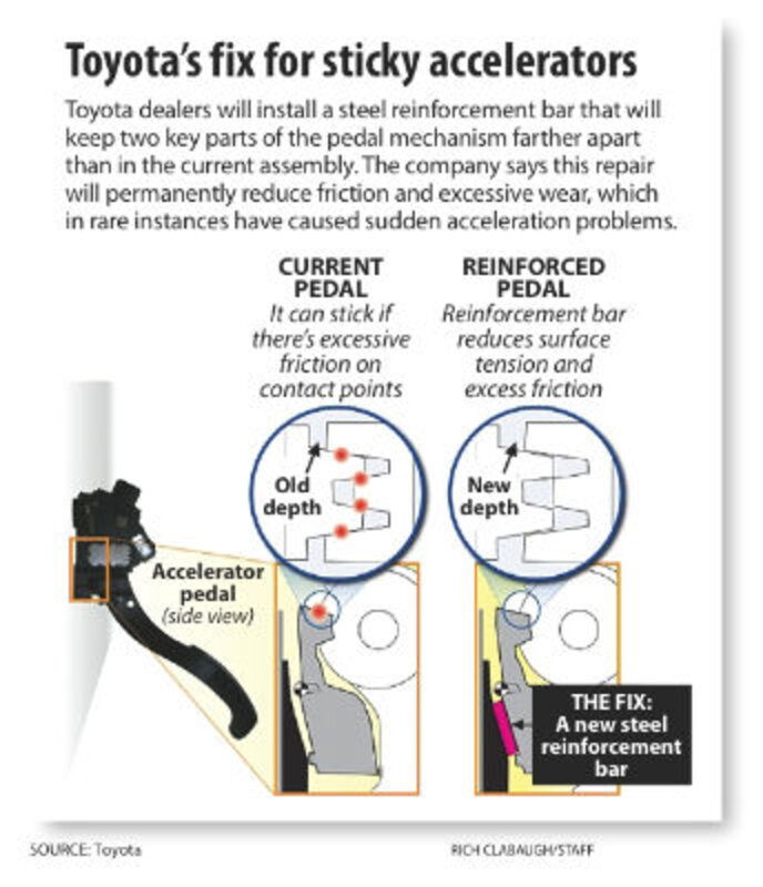 In October 2009, Toyota says it began getting reports of sticky accelerators in North America in pedal assemblies using PPS. Those reports led to January's recall of models using the CTS part.