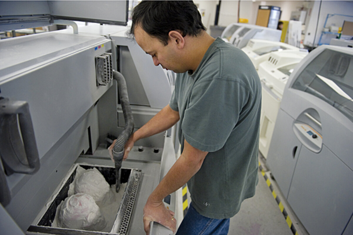 If a 3-D printer sounds like something out of Willie Wonka's fantastical candy factory, just replace the confectioners' sugar with a less appetizing kind of white powder. The little granules get molded into any imaginable colorful shape 鈥 from prototypes of shoe soles to architectural models.