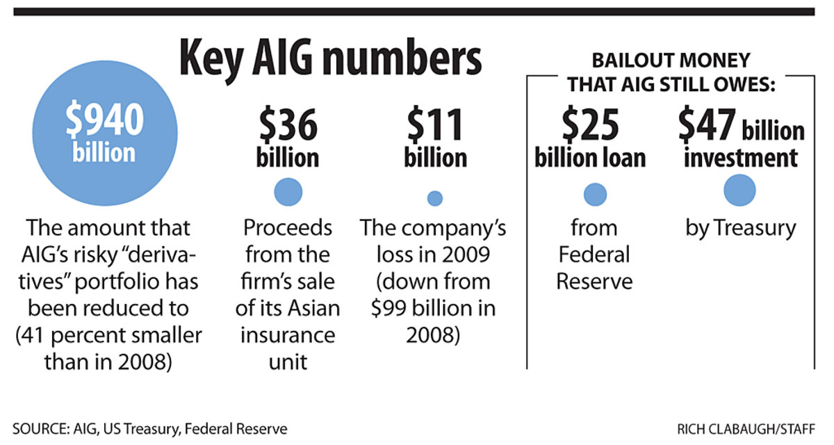 That endless-bailout scenario has some critics saying the government should press AIG to sell more assets, and faster, to repay taxpayers. The firm has been paring the size of its derivatives portfolio, but the package of $940 billion in contracts is still more than half the size it was at the end of 2008.