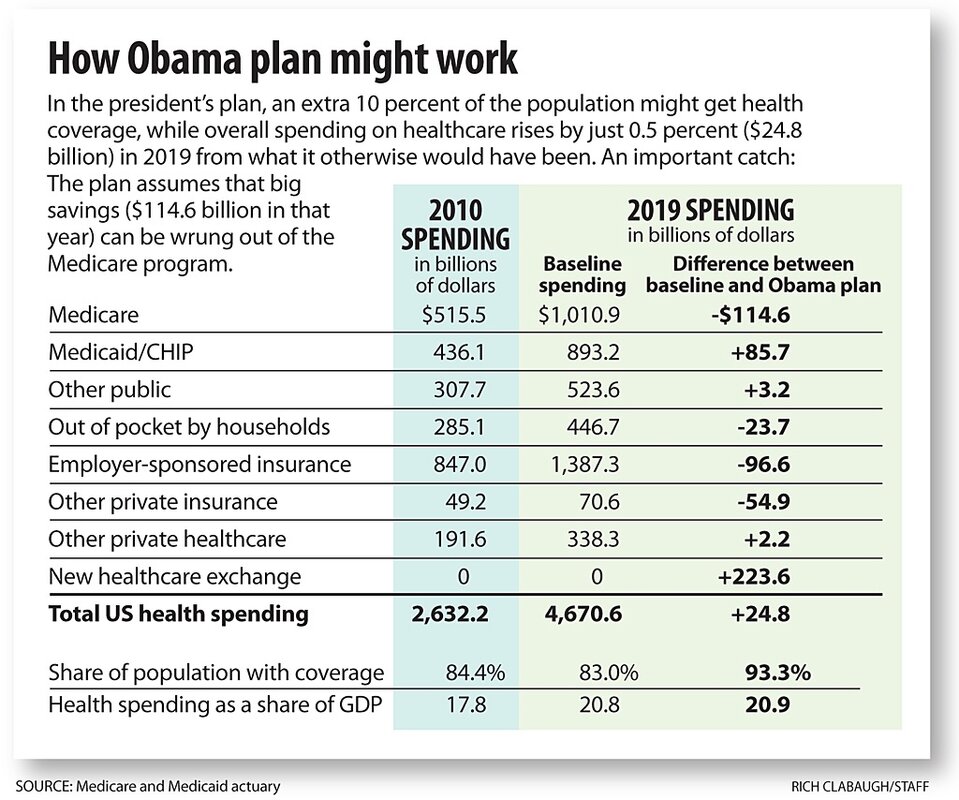 "The test [for Obama's plan] will be whether the rate of growth of healthcare spending relative to total income is higher or lower than it has been in the past," says Henry Aaron, a health policy expert at the Brookings Institution, a Washington think tank that tends to be centrist or left-leaning.