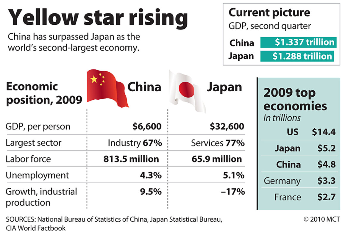 The Chinese economy has sprinted right past Japan鈥檚 to become the No. 2 economy in the world.