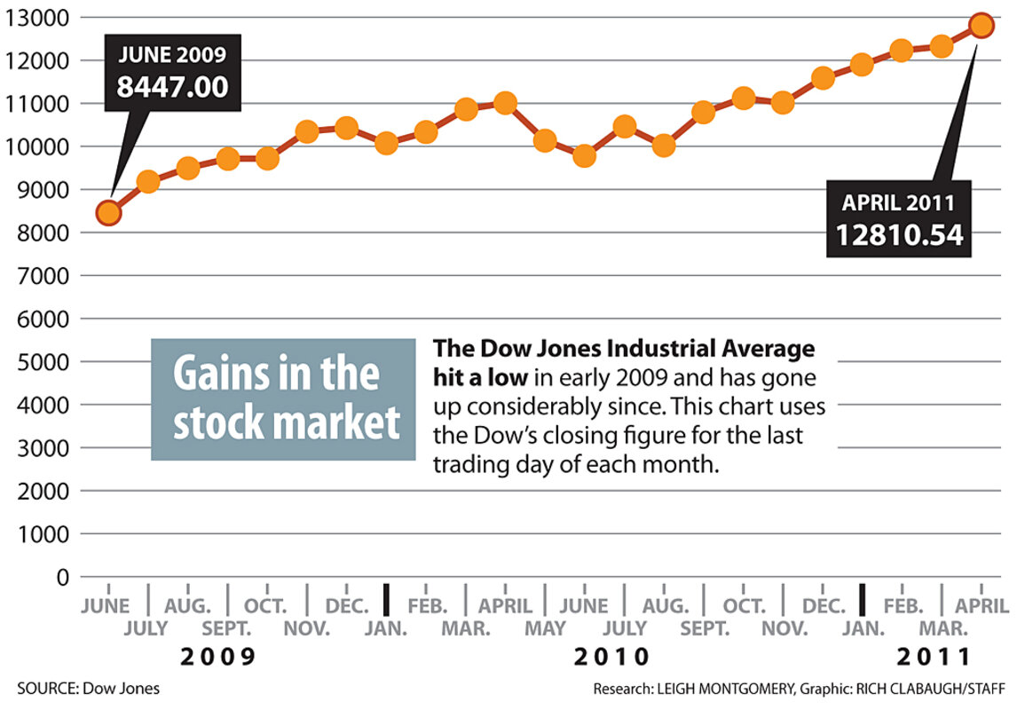 Since its low in March 2009, the S&P 500 stock index has gone up 105 percent. In late April, the Dow Jones Industrial Average powered to a three-year high, up 98 percent.