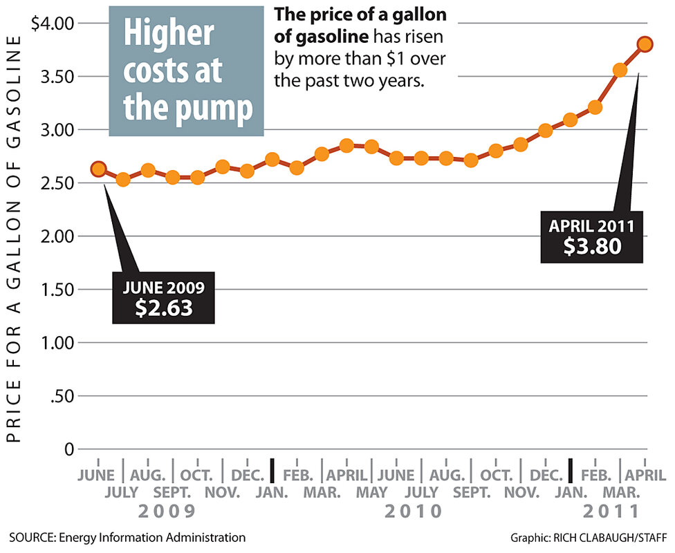 Indeed, over the past two years, that cost has risen considerably. In June 2009, the price of a gallon of gas was $2.63, according to the Energy Information Administration. By the beginning of this month, it was up to $3.98 鈥 an increase of $1.35.