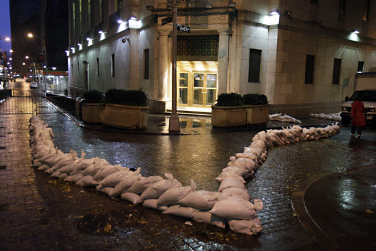 On Monday, areas around the Financial District were part of a mandatory evacuation zone, with the storm surge from Sandy expected to push waters into portion of lower Manhattan.
