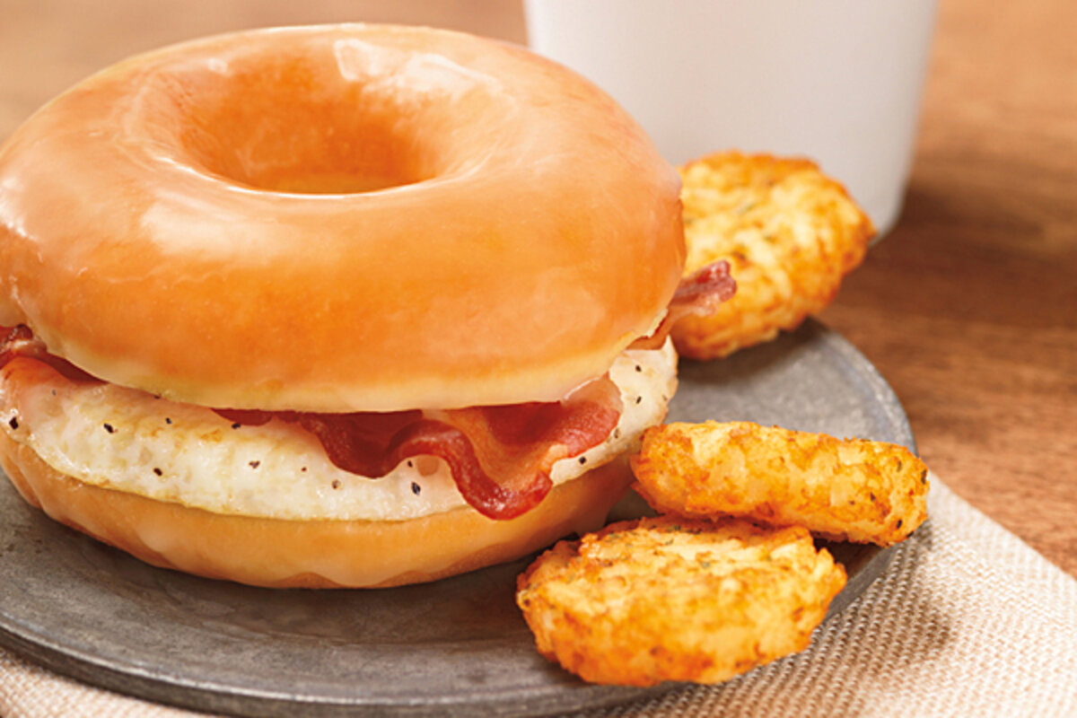 First, the basics: the Glazed Donut Breakfast Sandwich consists of a fried egg and thin strips of bacon situated between two halves of a glazed donut.聽 It鈥檚 far from nutritious, but not quite the junk bomb you might think: each sandwich has 360 calories, 20 grams of fat, and 13 grams of sugar. Prices will vary, but our sample sandwich from a store in Boston cost $2.99 plus tax.