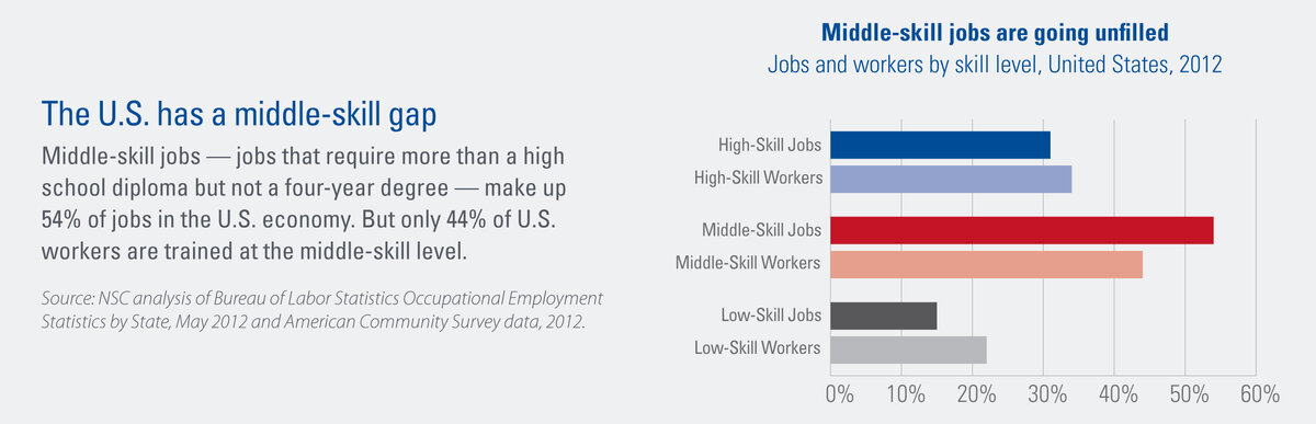 According to the National Skills Coalition, a Washington-based career-training advocacy group,听the need for workers in middle-skilled jobs in the US will remain one of the economy鈥檚 most pronounced in the near term.