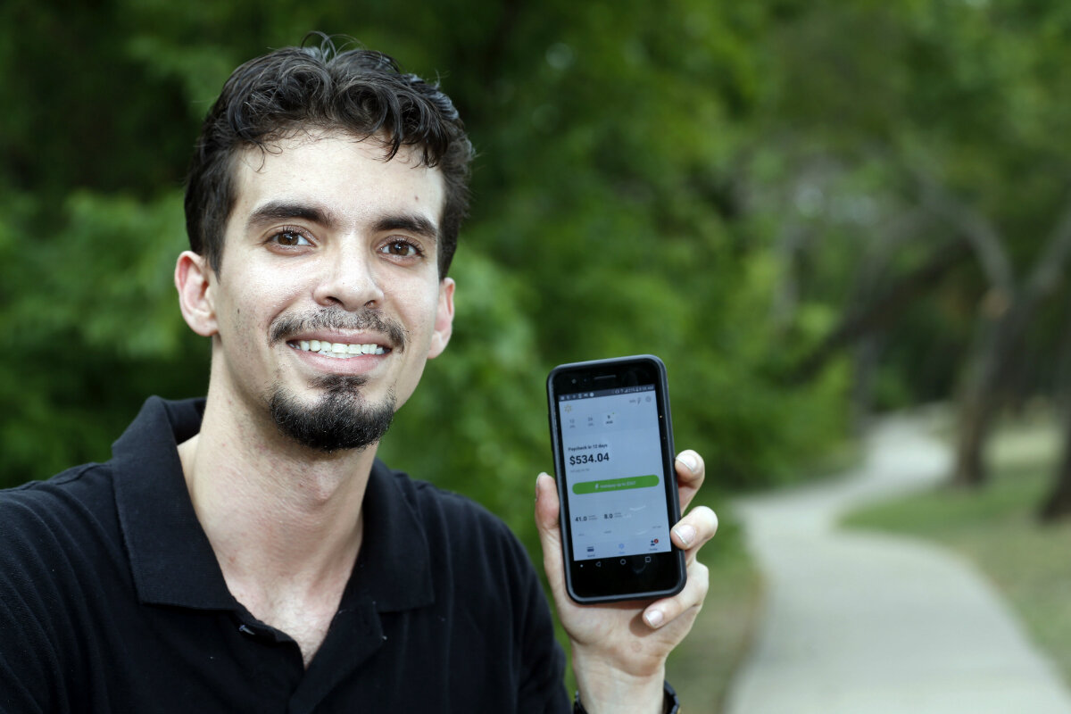 Vazquez pays $6 a month to use the app 鈥 there is no transaction fee. By comparison, a payday loan typically carries an annual percentage rate of 300 percent to 500 percent and is due in a lump sum, or balloon payment, on the borrower's next payday. Vazquez didn't provide the terms of the payday loan he took out years ago.