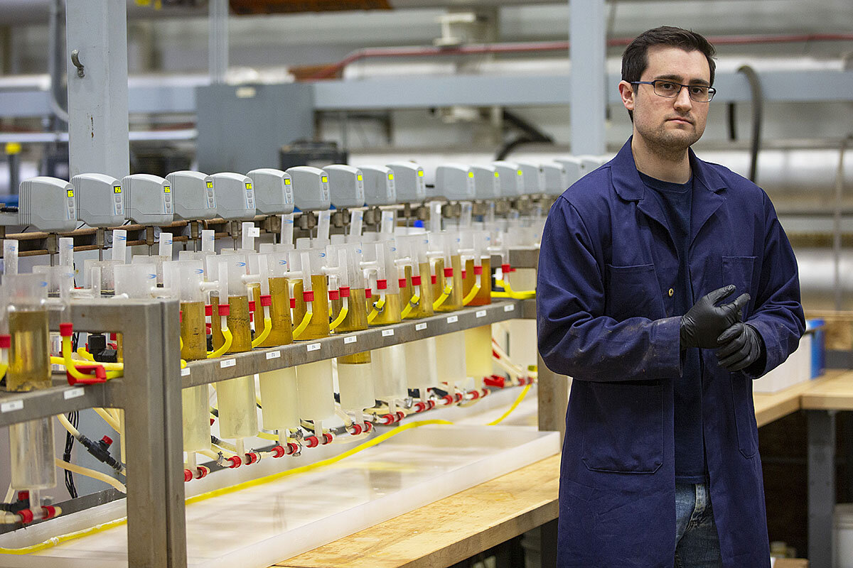 Now, Dr. Ziemkiewiczand his team in West Virginia are trying to change that strategic balance. In a cavernous laboratory, dozens of glass containers with miniature mixers in each one filter the acid mine drainage to create a greater and greater concentration of rare-earth metals. For all the impressive infrastructure, the end result is a handful of tan powder, like cocoa.