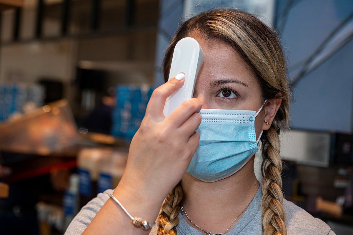 鈥淭his is my first day back. I was at home almost three months,鈥 she says, her eyes smiling above her mask. 鈥淚鈥檓 excited. I鈥檓 feeling good. I missed my co-workers. And my work.鈥