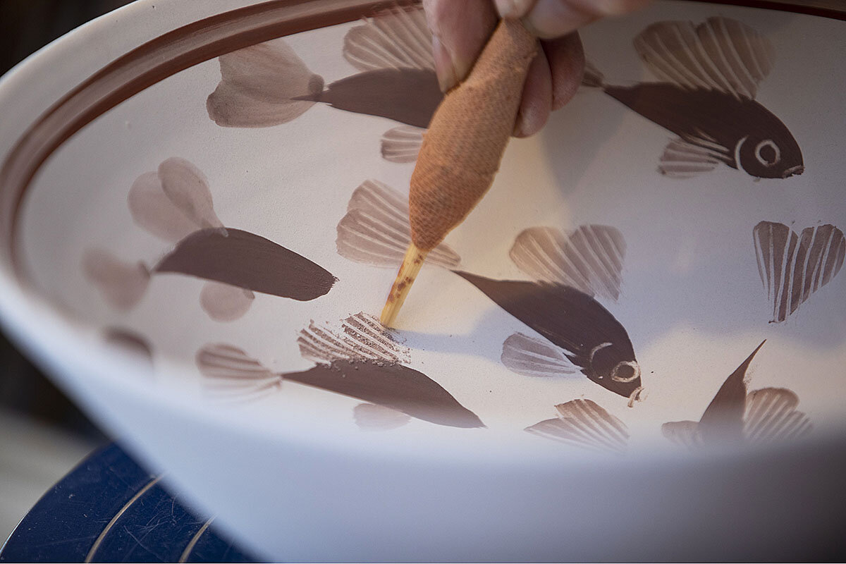 While painting intricate lines depicting wildlife on the outside of a mug, Ms. Thomas notes that pottery, one of the most ancient arts, takes on a deeply human feeling instilled by the one crafting it.