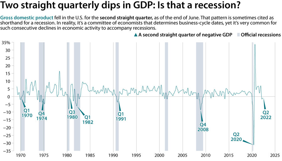 Several telltale signs of economic activity have shifted in recent months and now point to a slowdown. On Thursday, the Bureau of Economic Analysis reported that聽gross domestic product, a measure of the nation鈥檚 output, shrank for the second quarter in a row. In the popular mind, at least, that qualifies as a recession.