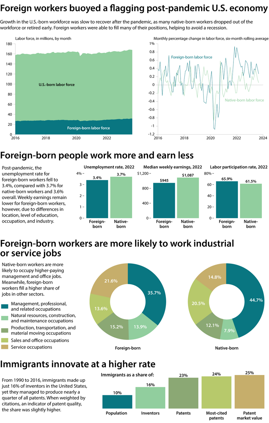 The increase in聽foreign-born labor聽is vital at a time when U.S. birthrates are declining, economists say.聽