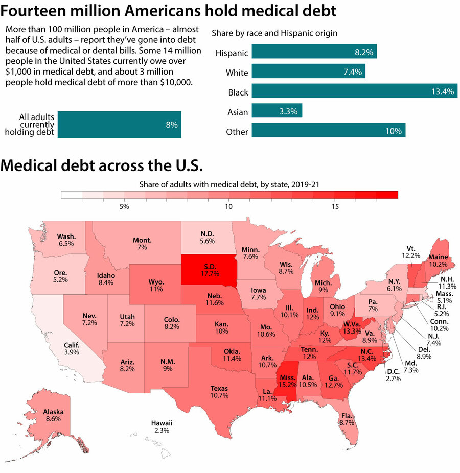 At the same time, there are some rising efforts to alleviate medical debt and curb the costs of borrowing in the U.S. After the three main credit rating agencies found that medical debt wasn鈥檛 a good predictor of creditworthiness, the 14% of Americans who had unpaid medical debt on their reports in 2022 dwindled to 5% by the middle of 2023.