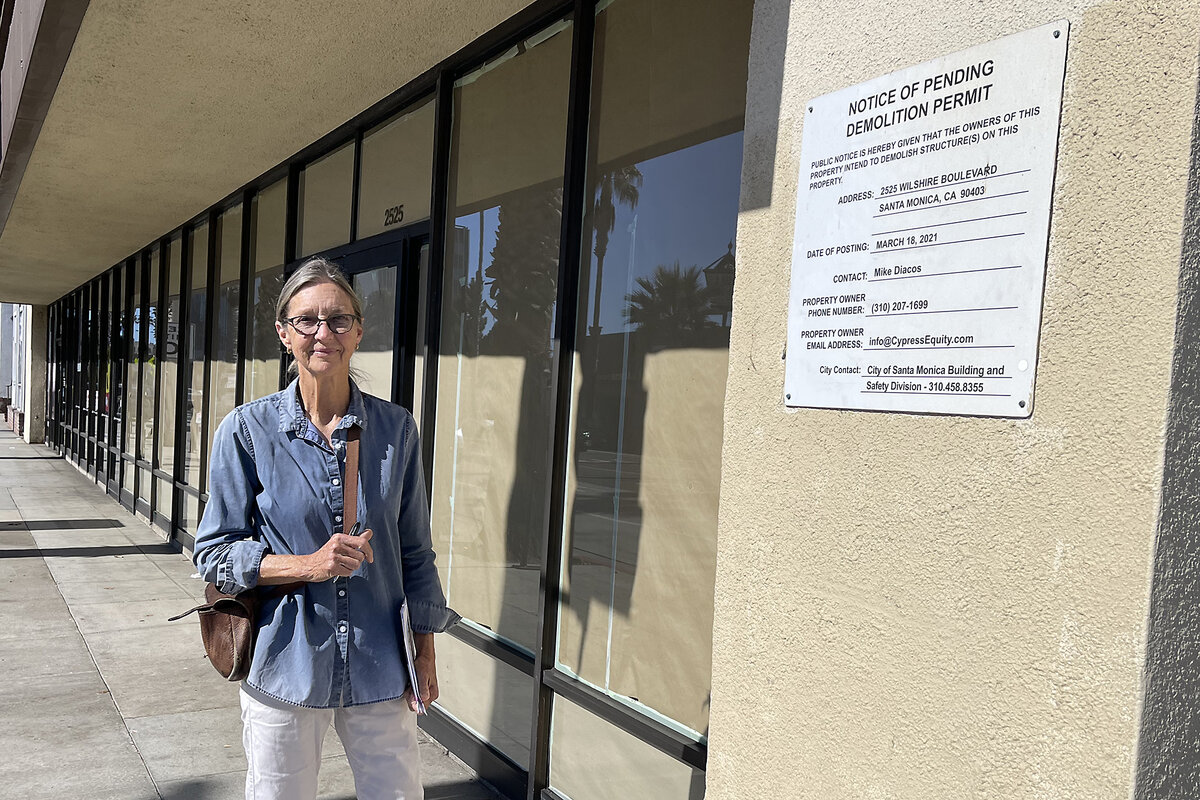Tricia Crane stands at the corner of Wilshire Boulevard and 26th Street in Santa Monica, a few blocks from her home, pointing out a stretch of businesses that will be replaced with a 170-unit apartment building.