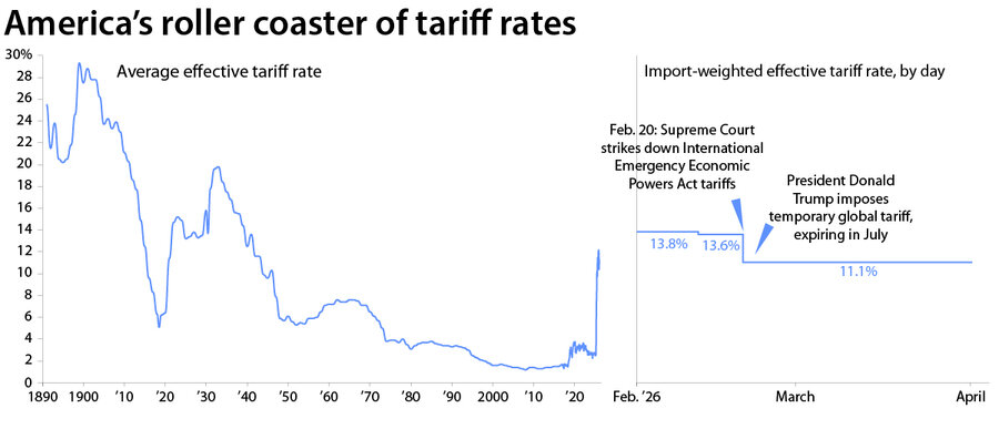The U.S. Supreme Court has now scrambled that picture, striking down in February the tariffs that the president imposed on “Liberation Day” under the International Emergency Economic Powers Act. That move cut the nation’s average effective tariff rate on imported goods from nearly 14% to just above 11%, the estimates.