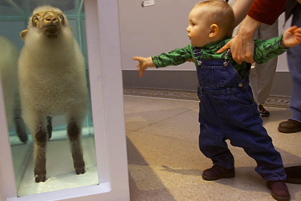Not familiar with Damien Hirst? He鈥檚 probably most famous for a 14 foot tiger shark preserved in formaldehyde (titled 鈥溾), spot paintings, and an as-yet-unsold skull covered with diamonds (鈥溾).