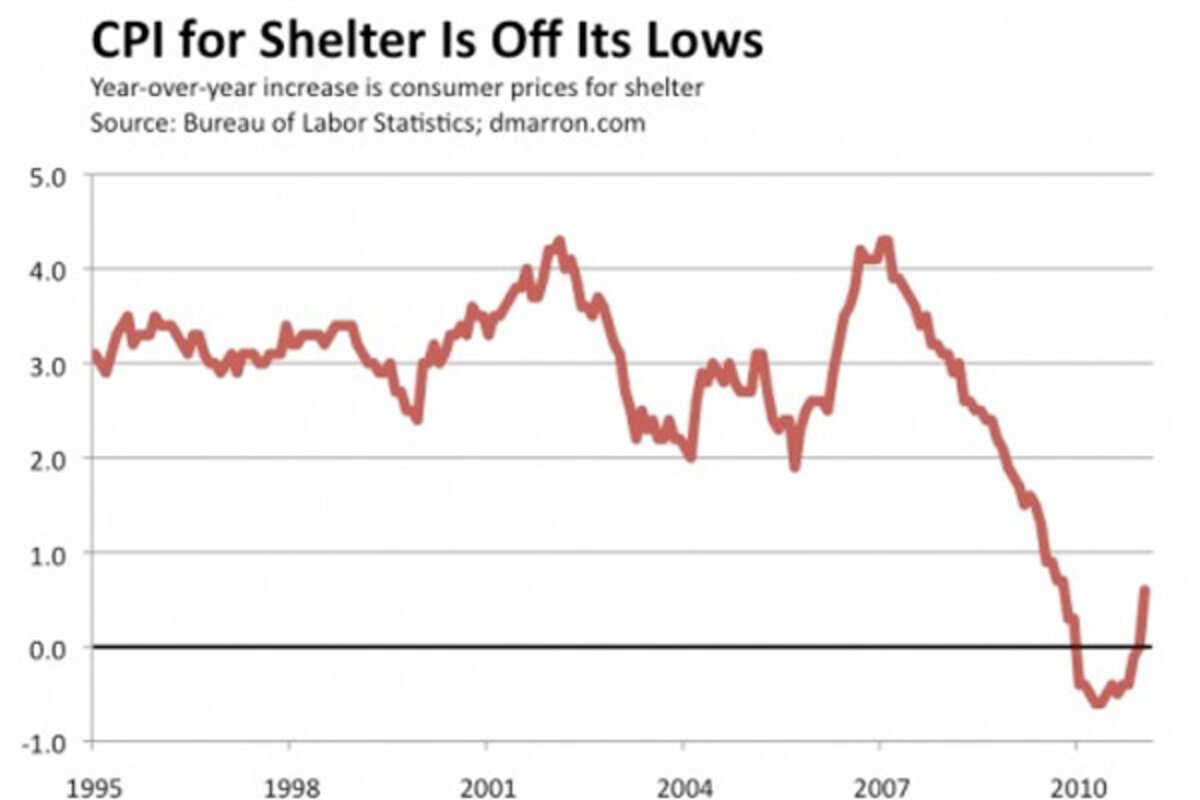 As you can see, the big change is that shelter costs over the past year are now rising, not falling: