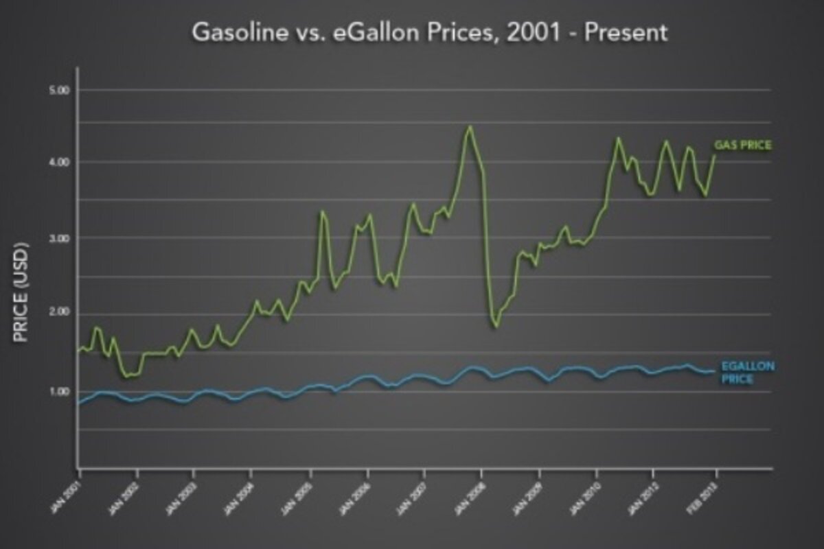 The U.S. average for each is currently $3.65 for a gasoline vehicle, and just $1.14 for an eGallon.