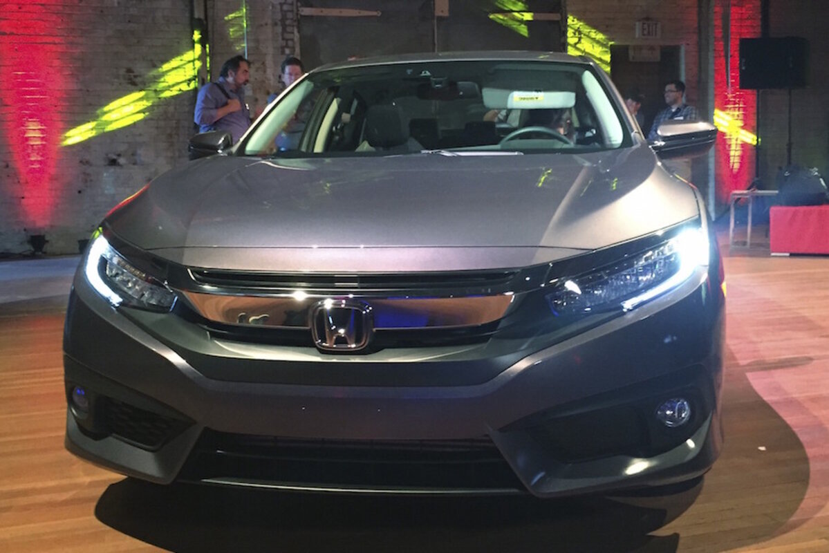 The 2016聽聽sedan is simply the best-looking Honda in a decade or more, with an edgy fastback profile that hides a increase in size by widening and lowering the sedan's proportions. The front end may be its weakest angle, with a thick and formal band of chrome; elsewhere the Civic's flared wheels, fast roofline, and bracket-shaped taillamps wouldn't look out of place in an Acura showroom. The back reminds some of the departed Accord Crosstour, but the package comes together in a striking look that's a welcome departure from its blander predecessor.