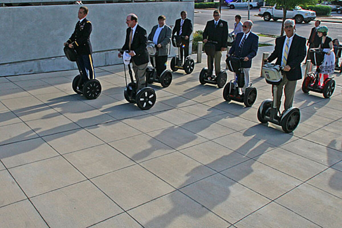 The battery-powered Segway, which is stabilized by gyroscopes, was invented by Dean Kamen, who founded the company in 1999.