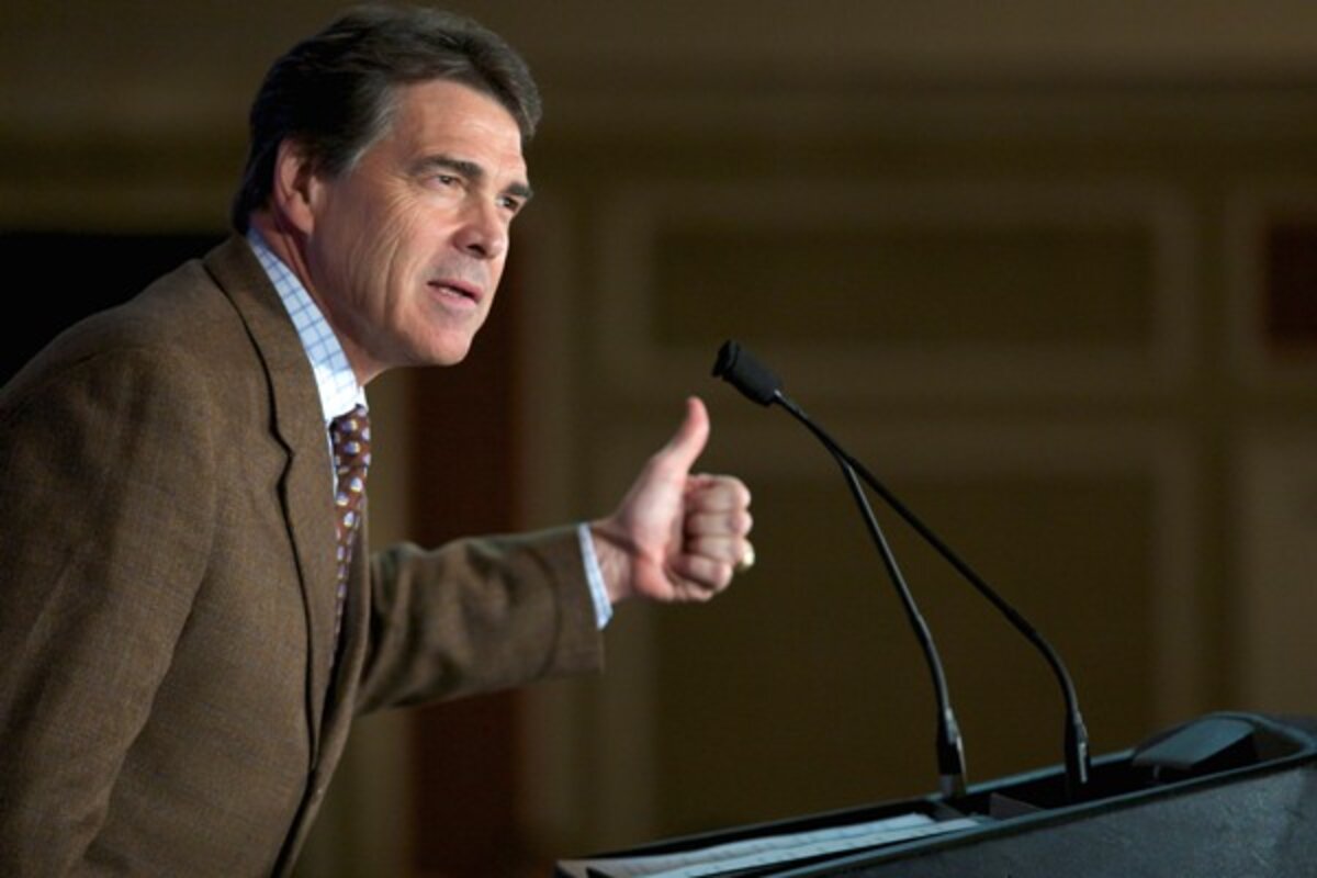 Republican presidential hopeful Rick Perry was at a meeting called "Politics and Eggs For Breakfast" in New Bedford, New Hampshire.