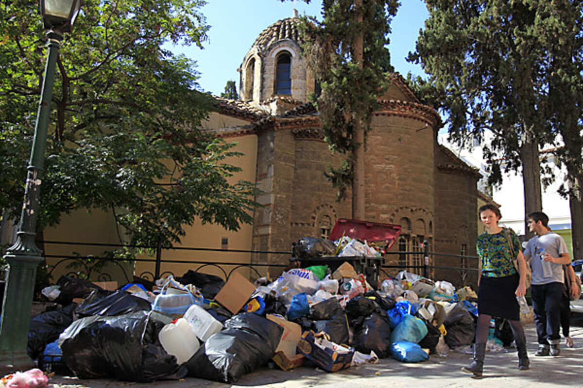Sanitation workers, along with nearly all other civil servants, are on strike, leading to heaping piles of trash on corner after corner.