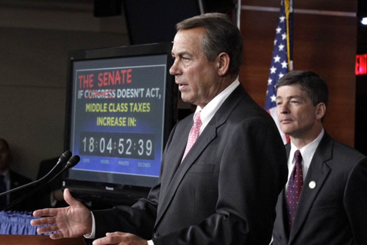 "The Senate can take up our bill, they can pass it, they can amend it, they can move their own bill," he told reporters, standing beside a video clock counting down the seconds until the payroll聽tax boost that would otherwise occur Jan. 1. "But it is time for the Senate to act. Democrats who run the United States Senate can't continue to hide and sit on the sidelines."