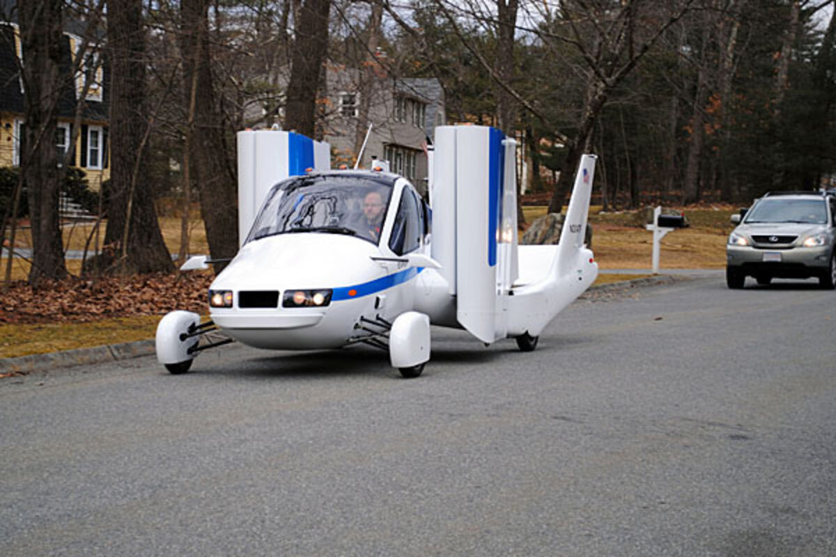 The Transition can reach around 70 miles per hour (112 kph) on the road and 115 mph (185 kph) in the air, spokesman Steven Moscaritolo said. On the ground, it gets 35 miles per gallon (15 kilometers per liter).