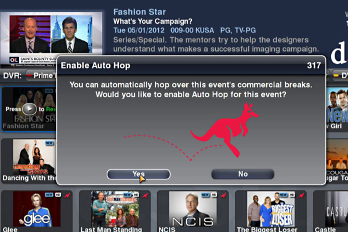 Satellite TV provider Dish Network鈥檚 new ad-skipping feature, AutoHop, enables subscribers to black out ads on programs they鈥檝e saved on their digital video recorders. When activated, AutoHop turns the screen dark when a commercial arrives, then returns to the show a few seconds later.